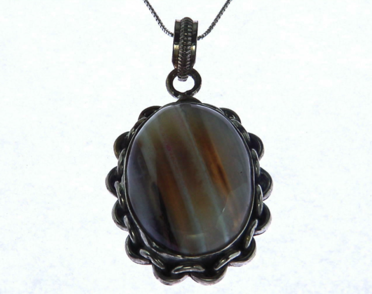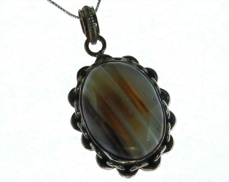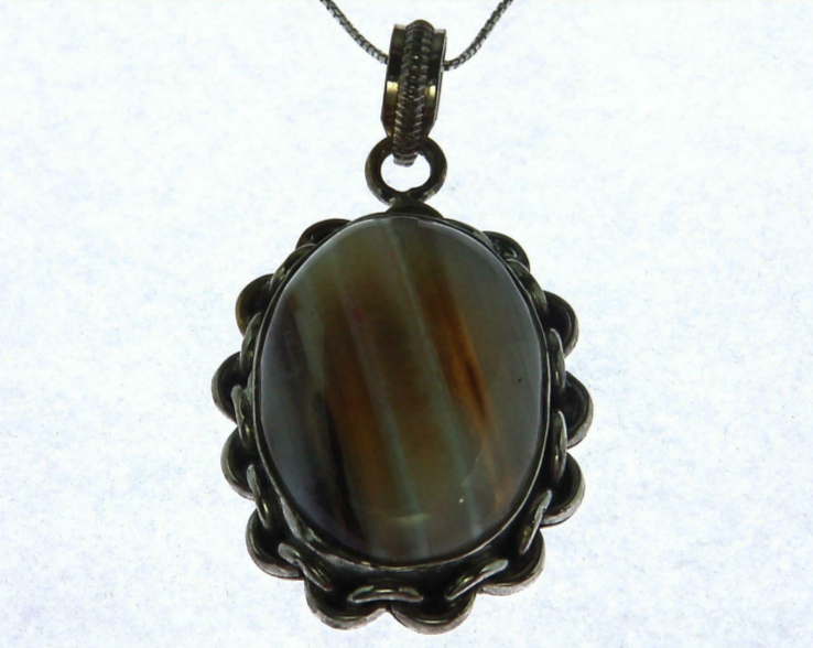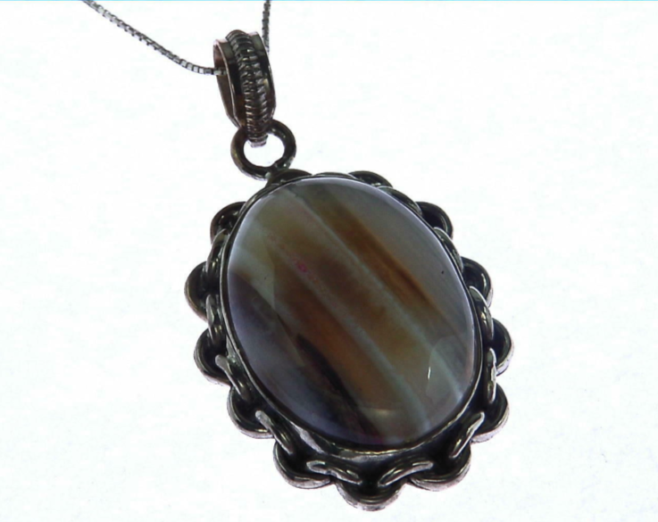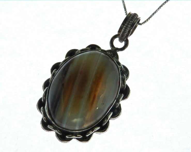 Agade With Wire Wrap Silver PendantAgade With Wire Wrap Silver Pendant