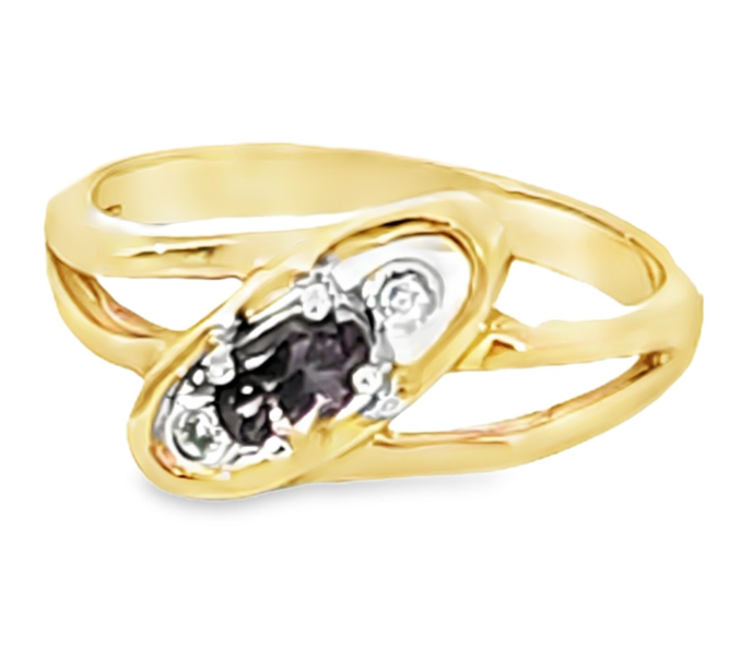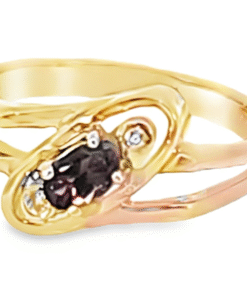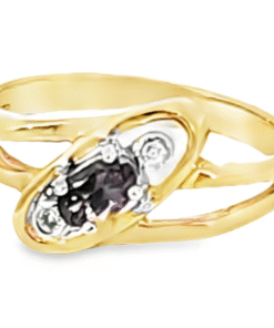 Today’s item is Natural Genuine 0.38 CT Alexandrite country of origin Sri Lanka, oval cut gemstone has good color change from beautiful light green to purplish red. set in a beautiful design in 14 kt yellow gold Lady’s Ring. The exquisite georges ring also is set with 4 genuine diamonds.