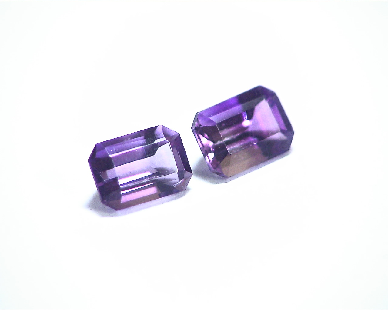 This is a Beautiful Natural Genuine Emerald cut Matched Pair of Amethyst Faceted Gemstones