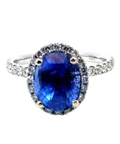 This Unheated Natural Genuine Blue Sapphire with GIA Cert set in 18 kt White gold Diamond Unique Lady’s Ring, Has a Ceylon sapphire of 4.53 Ct set in a beautiful design with vs Genuine 44 diamonds and 0.72 CT in weight. The design is very beautiful and ideal for a engagement ring, as Natural Genuine unheated Blue sapphire are very rear, this ring can be sized to any finger upon request for a nominal extra charge.