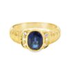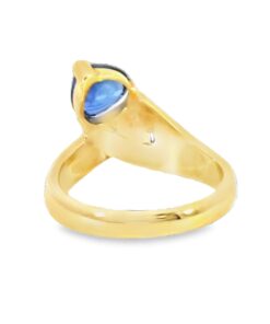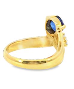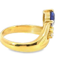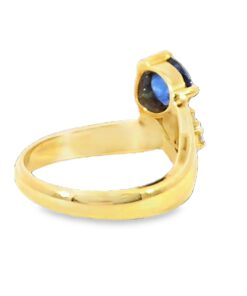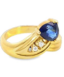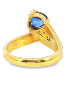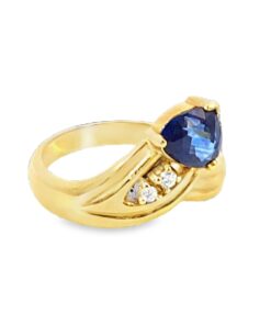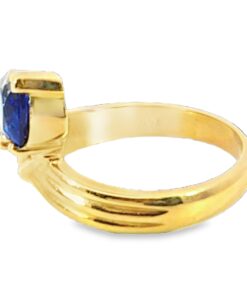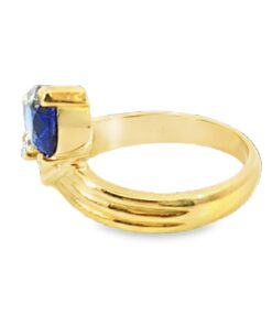 This Blue Sapphire Natural Genuine Gemstone Royal Blue Color Set in 18 kt yellow gold with 2 Genuine Diamonds in a beautiful design Lady’s Ring. The Ceylon Sapphire is 1.75 CT set in a beautiful design with 2 vs Genuine diamonds 0.04 ct. The design is very Simple and has a Vintage Look and ideal for a engagement ring, as Genuine Blue sapphire are very rear, to find in a Nice Emerald Cut.