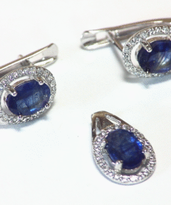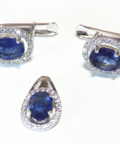 This is A Natural Genuine Blue Sapphire country of origin is Sri Lanka. This genuine Gemstones are set in sterling silver Pendent and matching pair of earrings.