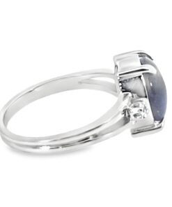 This is a natural genuine Light Blue Star Sapphire with strong Star 3.19 CT Made into a beautiful Ring with two 0.10 points Diamonds in a lady’s Design, this is a Sri Lankan Natural Genuine Gemstone which is not treated in any way