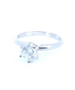 Today’s item is a beautiful genuine 1.00 Round well Cut diamond 14 Kt White Gold Ring in a Tiffaney design