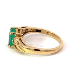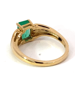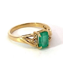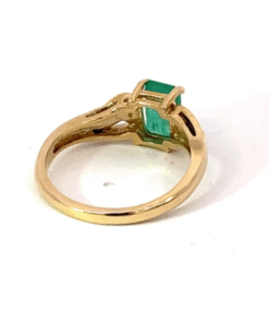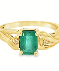 Today’s item is a Natural genuine Colombian Emerald set in 14 KT Yellow Gold Lady’s Ring in a beautiful Design with 2 Genuine Diamonds