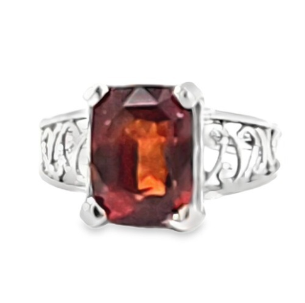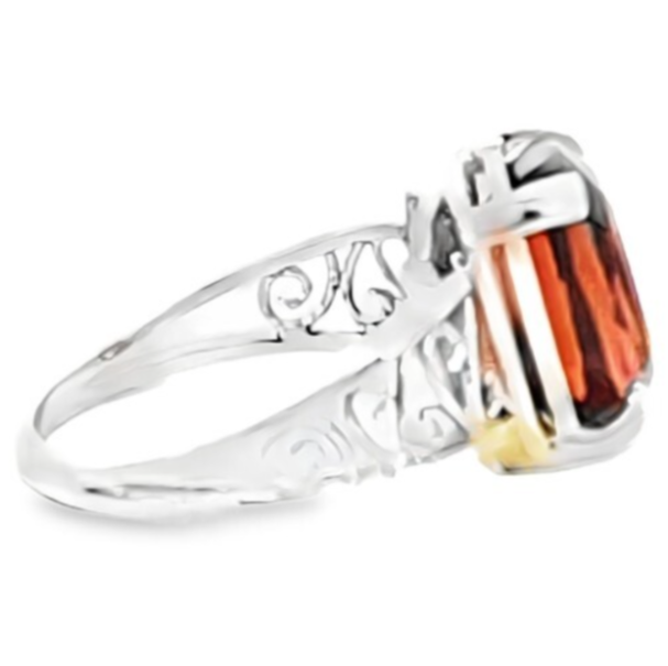 This is a Natural genuine Hessonite Garnet From Sri Lanka in a mining area called Kataragama, in south east part of Sri Lanka where this stone was found, as of now no more mining done there This was found a decade ago in the Rough, and this gemstone is in a Nice 14 Kt White Gold Vintage design.