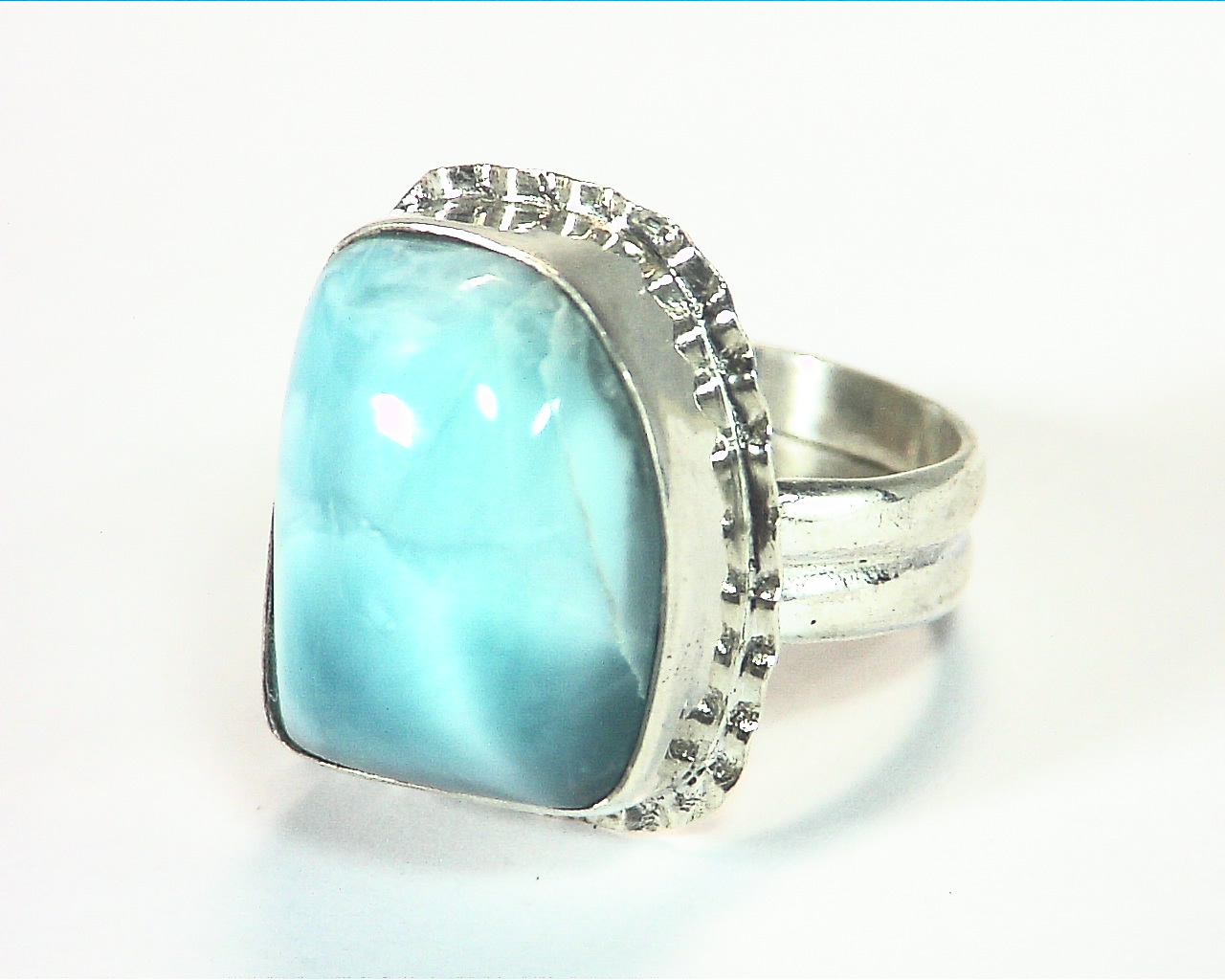 Larimar Natural Genuine Gemstone sterling Silver RING