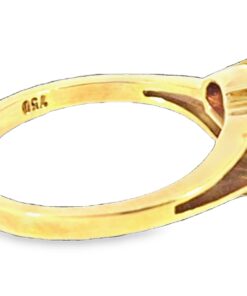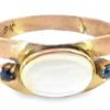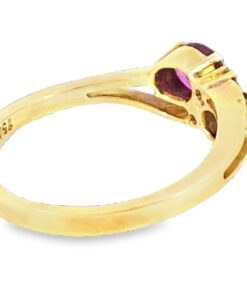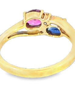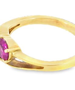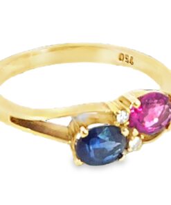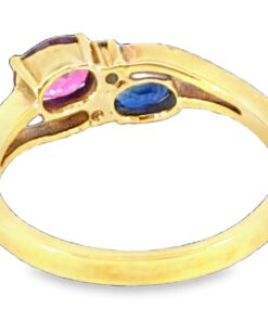 This is a natural genuine Ruby Blue Sapphire cabochon is set in 14 kt yellow Gold Lady’s ring in a beautiful design. The Ruby stone is well known as a deep red gemstone and crystal. It is an excellent stone for recharging your energy levels, and it may stimulate your mind to be more positive and self-assured. Its striking color is analogous of its energy, which is very effective for encouraging vitality, sensuality and sexual energy. As well this lovely red crystal may assist you to overcome sexual dysfunction and attract new love. This is a very much a heart centered stone, and it epitomizes the Divine love of the Creator. It is a stone of manifestation, and will also support the retention of wealth, of all sorts.
