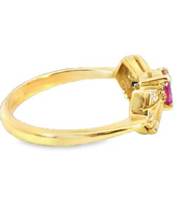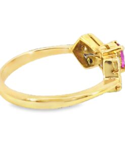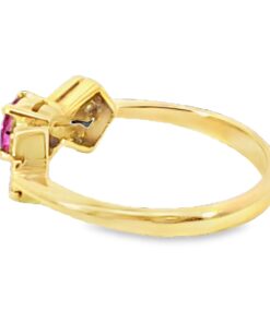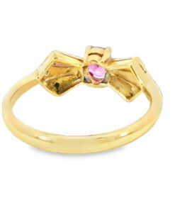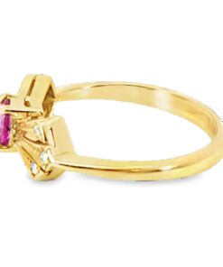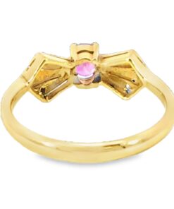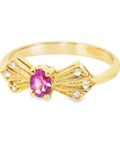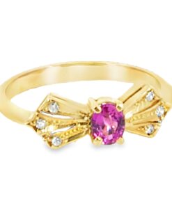 Natural genuine 0.50 KT Pink Sapphire, set in is a beautiful 18 KT yellow gold Lady’s Ring with natural genuine 0.03 KT diamonds.