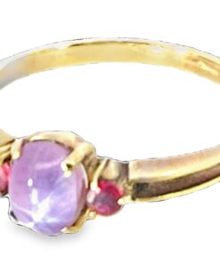 Pink Star Sapphire and Ruby Natural Genuine Gemstone ,14 kt yellow Ring H70