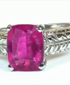This is a natural genuine beautiful pink tourmaline set in 14 kt White Gold Lady’s Ring in a antique design.