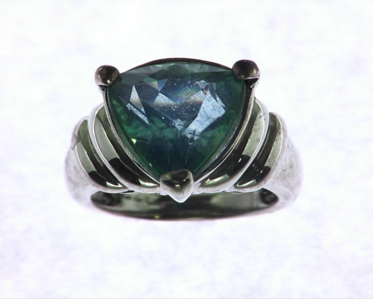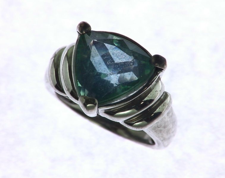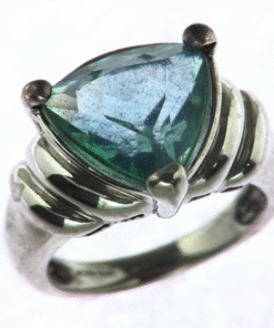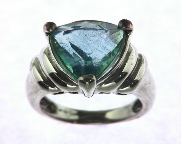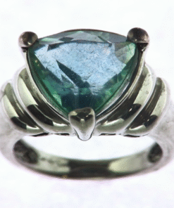 This is a natural genuine white Quartz which is treated for the color and the stone looks like a Paraiba Tourmaline blue and set in sterling silver Simple design ring.