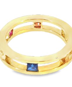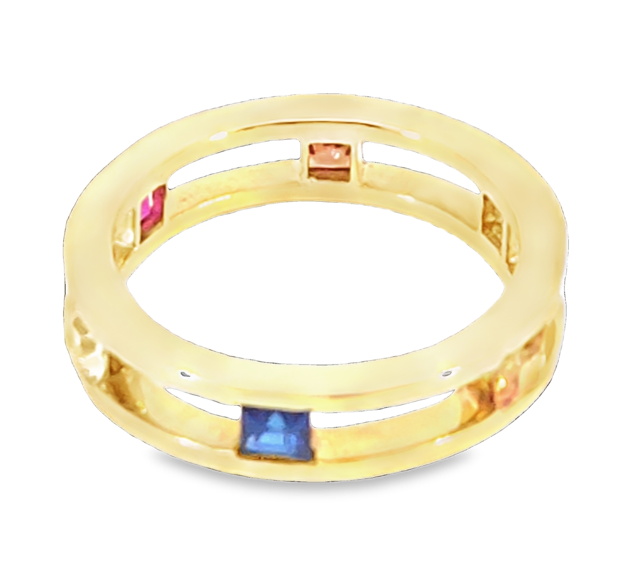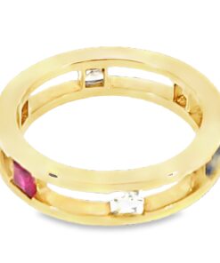 This is a Natural genuine Multicolor Gemstone Ring set in is a 14 KT yellow Gold Lady’s design Ring.