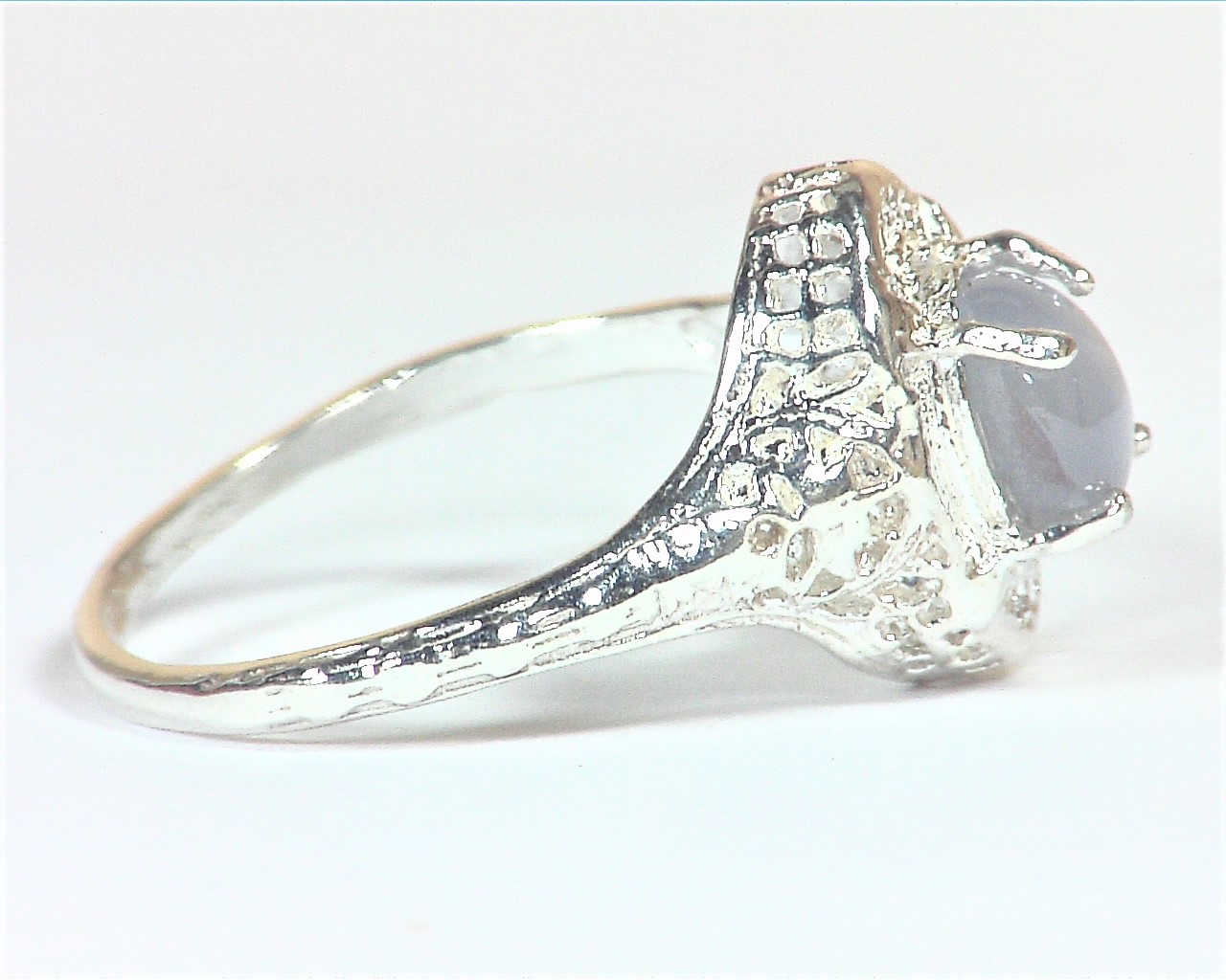 Today, item is a natural Genuine Untreated Star sapphire from Sri Lanka, set in a beautiful simple design Lady,s Ring, in sterling silver. The Gemstone has a good clear Natural clear prominent star, it is very difficult to find natural Star sapphire s that are not treated as it is rare to find them and expensive.as this gemstone was from my own old collection made to this Beautiful ring.