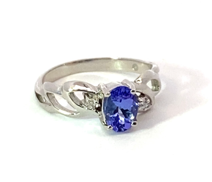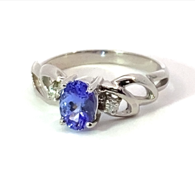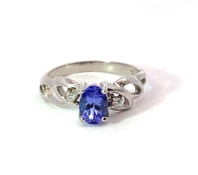 Today’s item is a beautiful Tanzanite gemstone set in 14 Kt White Gold in lady’s engagement ring, This ring can be sized up or down.