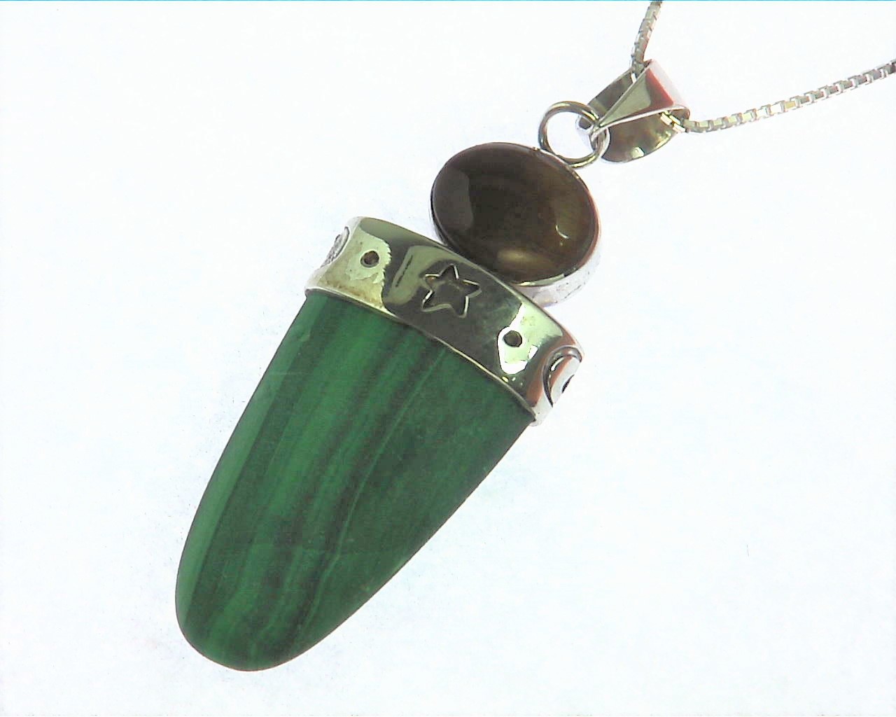 Beautiful Tiger Eye And Mallakite Set In Sterling Silver