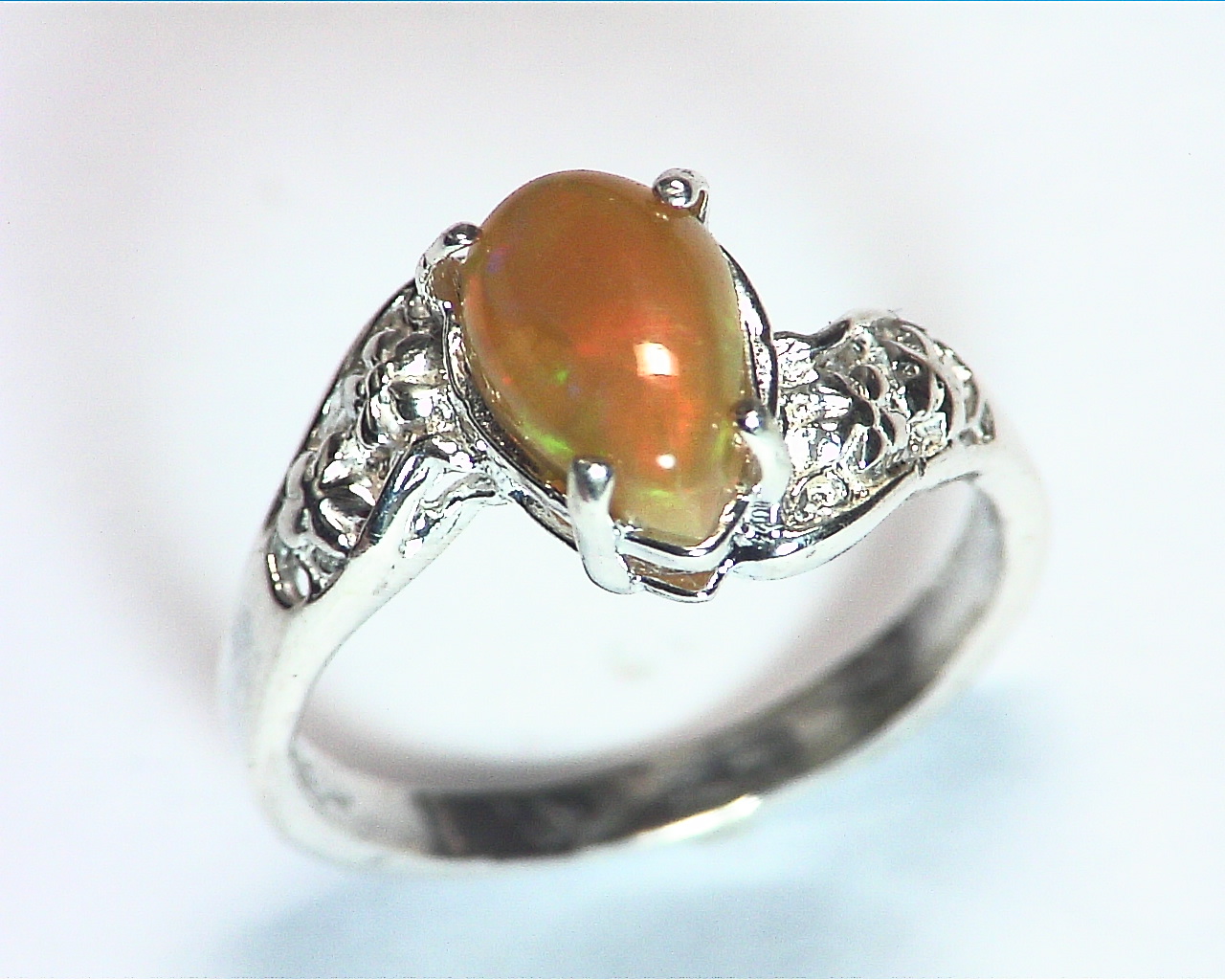 Natural Genuine Mexican Fire Opal Ring Set In Sterling Silver