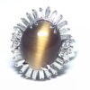 This is a beautiful Cats Eye Tiger Eye the ray is very strong and sharp usually you do not see tiger eye this clean as the body is clear, This beautiful Natural gemstone is set in 18 kt Gold Head with Beautiful Natural Genuine Round and Baguette diamonds and the Shank is made in 14 kt White gold so it will be strong the gemstone and the Diamonds are of good Quality this Gemstone, was found in Africa from a new mine and from a small deposit. the ct weight is 8.85 cts and the Ring size 6.25 Stone size is 14 x 12 x 7 mm. The design Measurements are 22x19x11mm